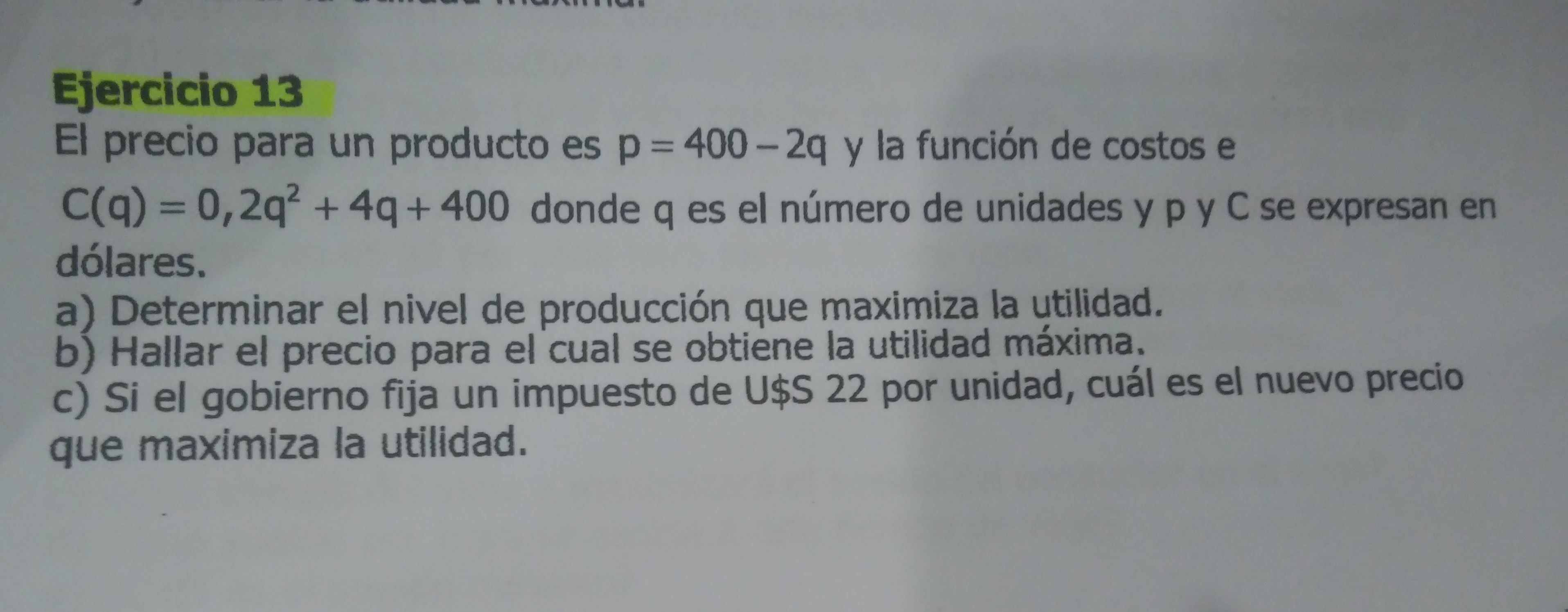 De este ejercicio tengo hechas la ate a y la b. La unica que me costó es la C que no se donde aplicarle el impuesto.