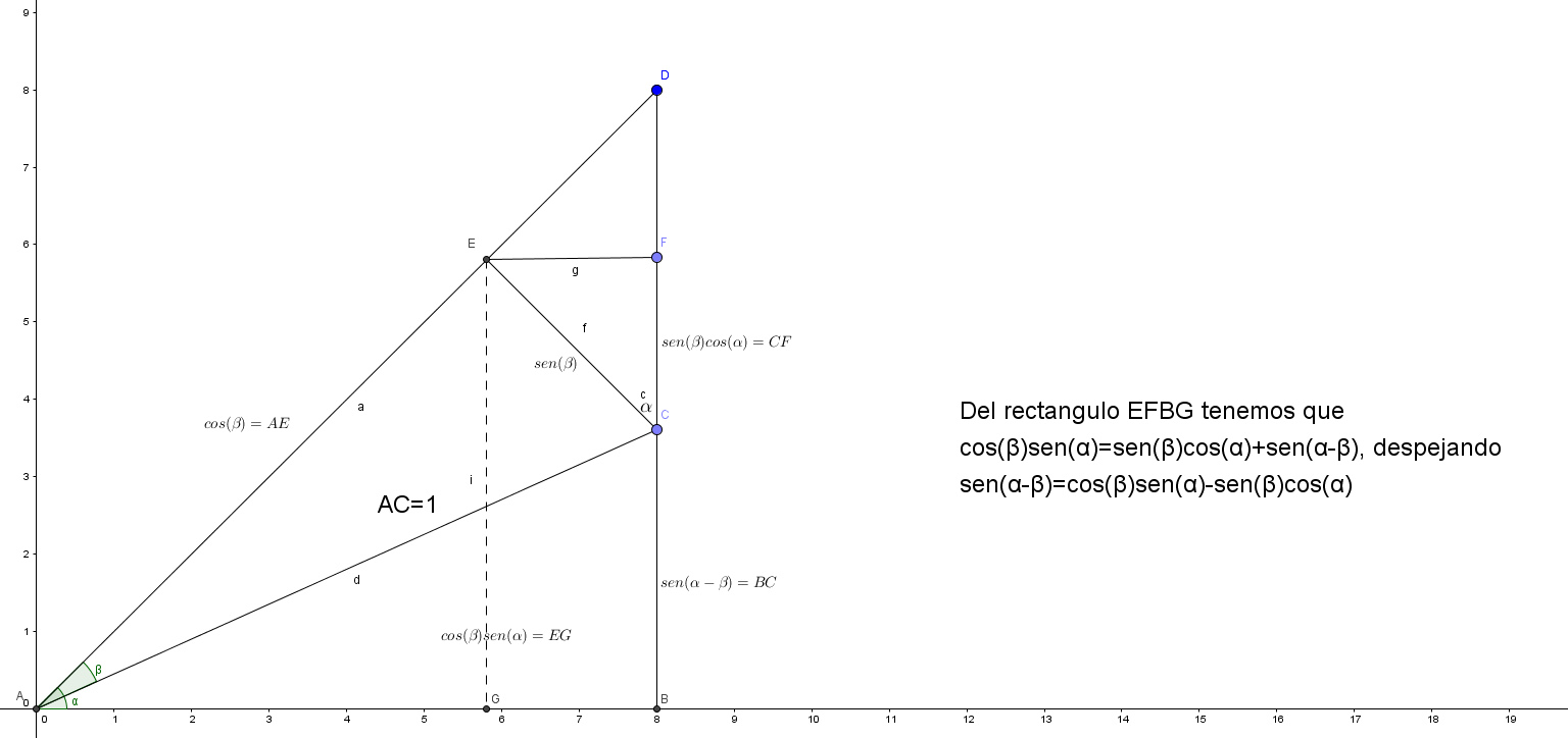 Dice asi: Deduce la identidad del seno y coseno para la sustracción de dos ángulos, usando la figura adjunta, sin usar la identidad para la adición.