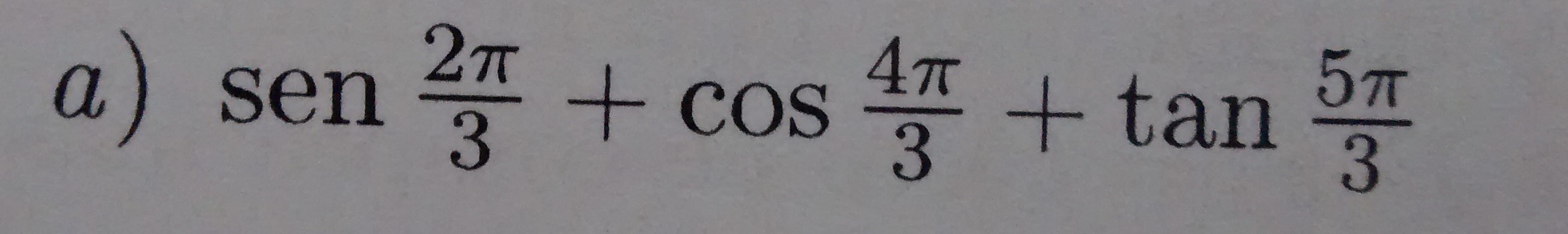 Hola.. sin calculadora tengo que resolver esto.. Me dice que sabiendo los valores del seno y del coseno de 0 ; π/6 ; π/4 ; π/3 ; y π/2 tengo que calcular esto. Muchas gracias