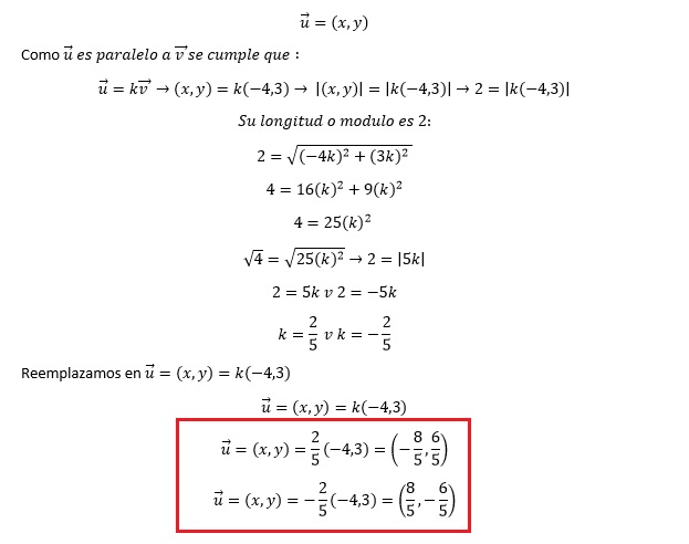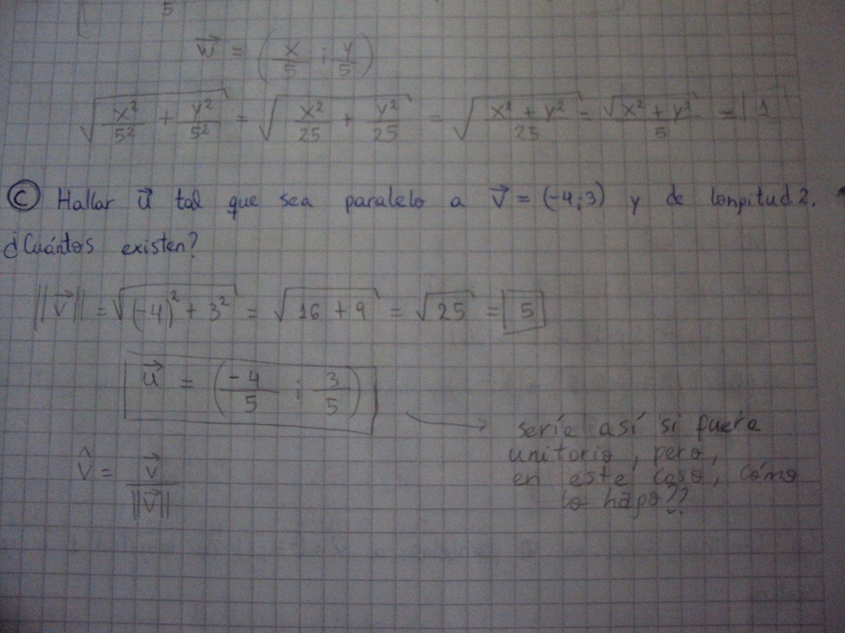 la parte que me estaría complicando es que tiene que ser de longitud 2. lo resolví como si fuera un vector unitario, pero no sé cómo hacerlo para que sea de longitud 2 y a la vez , paralelo al vector dado. Me podrían decir qué es lo que me está faltando o qué tengo que corregir?? Gracias!