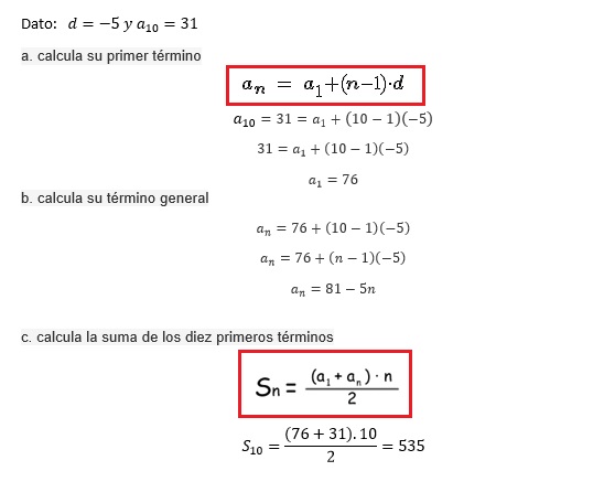 de una progresión aritmética conocemos su diferencia= -5 y A10= 31