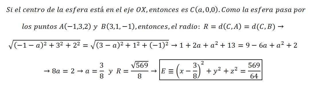 Hola hago una consulta un poco fuera de lugar. es de universidad cónicas en r3, por si alguno me podría dar una mano: Hallar la ecuación de la superficie esférica con centro sobre el eje x, que pasa por los puntos A( -1,3,2) B (3,1,-1)
