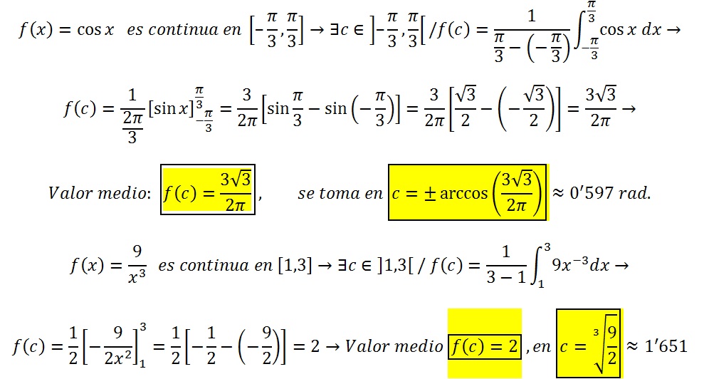 es sobre el teorema del valor medio para integrales