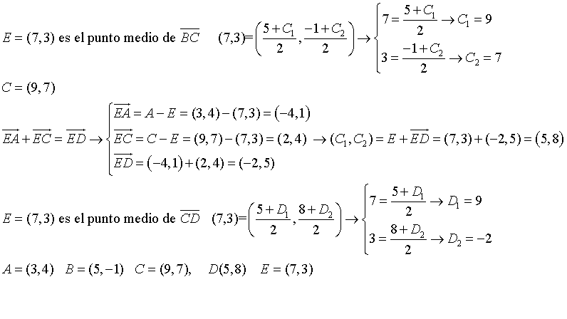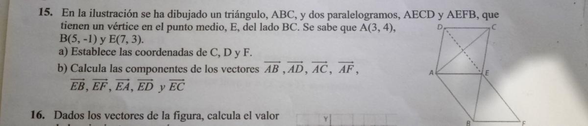En el primer apartado he intentado hacerlo de tal forma que el vector AB fueran paralelos a CD, pero no me sale el resultado correcto, por lo que también lo que he hecho de otras formas pero siempre me sale lo mismo. Alguien me puede ayudar, por favor