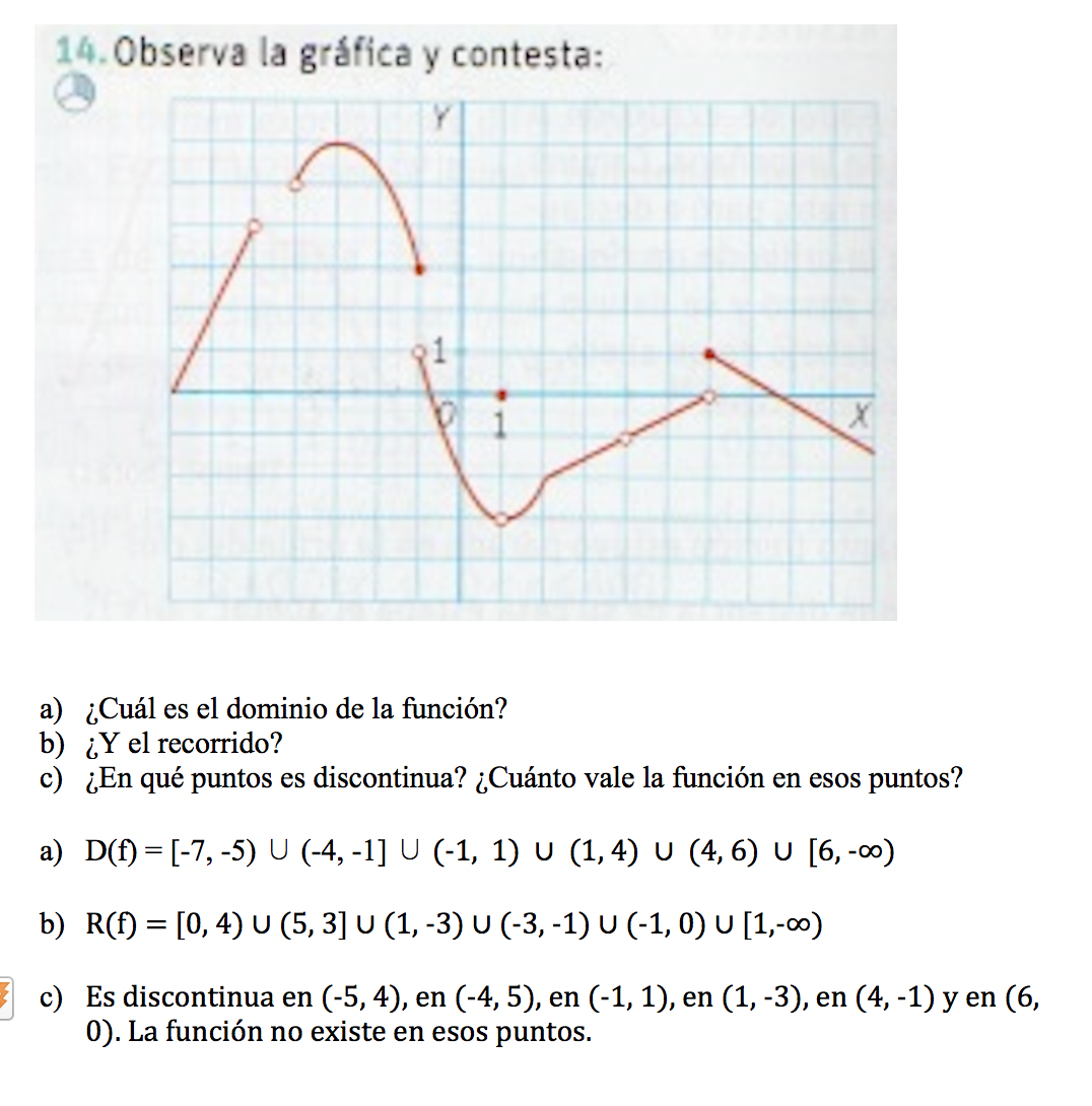 Buenos días. No estoy muy seguro de haber hecho correctamente el ejercicio que he hecho y adjunto. En el mismo hay cuatro apartados: dominio de la función, recorrido, puntos de discontinuidad y valor de la función. ¿Le podéis echar un vistazo y comentarme? Gracias.