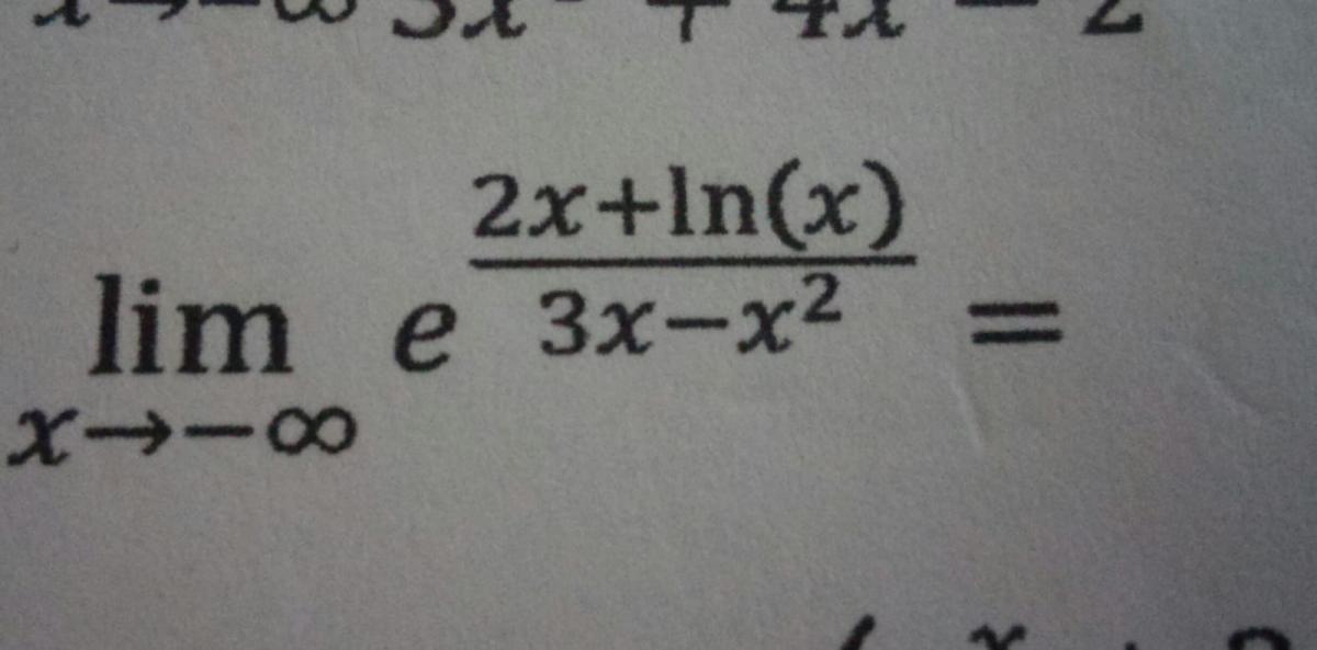El limite cuando x tiende al infinito de : In ( 4x-8/ ex + x2 -2) , Podrían ayudarme con este limite? , lo que entiendo es que ex es de mayor orden que 4x, pero a su vez ambos se encuentran dentro del in, por lo tanto vendría a ser cero positivo (?