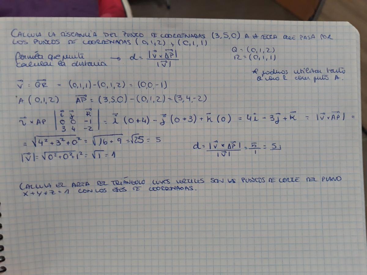 Podrias decirme si el ejercicio esta bien y ayudarme con el siguiente porfa , el 4 y este : Hallar la distancia entre los planos x + y - z +5 =0 y x + y - z • 1 = 0 , gracias de antemano![]()