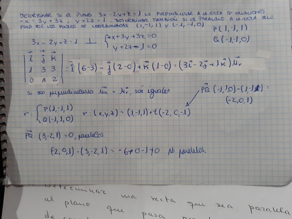 Luego, planteas la ecuación de la recta que pasa por el punto A y es perpendicular a los planos, por lo que tienes que su vector director es n, y quedan sus ecuaciones cartesianas paramétricas: