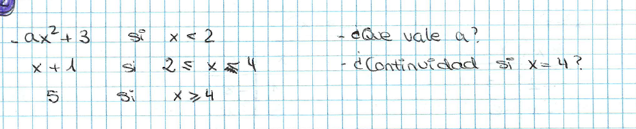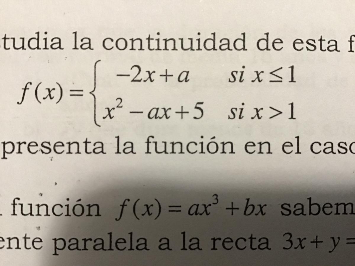 f(1) = evalúas en la expresión del primer trozo = -2(1) + a, por lo que tienes: f(1) = -2 +a (1);