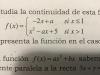 Observa que los dos trozos de la expresión tienen expresiones polinómicas, por lo que aceptamos que son continuas, por lo que solo queda estudiar la continuidad de la función en el valor de corte: x0 = 1.