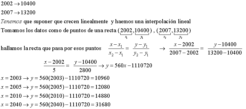 En una Universidad, el año 2002 había matriculados 10 400 alumnos, y en el año 2007, 13 200.Estimar cuántos había: