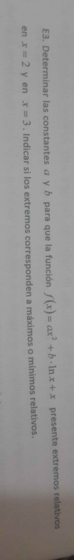 f ' (x) = 0, sustituyes la expresión de la función derivada primera evaluada para los valores indicados (x = 2 y x = 3), y queda el sistema de ecuaciones: