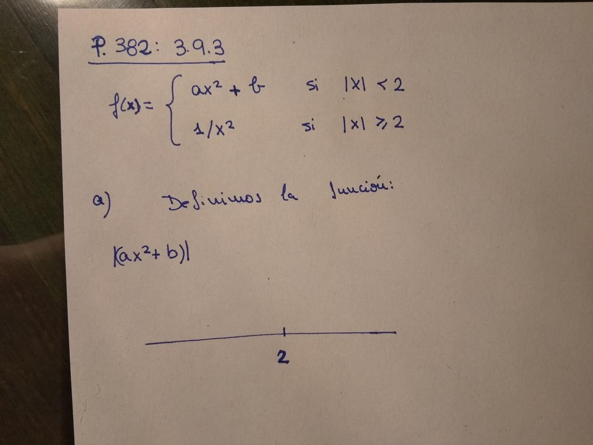 Dice: calcular a y b par que f sea continua y derivable en todo R .