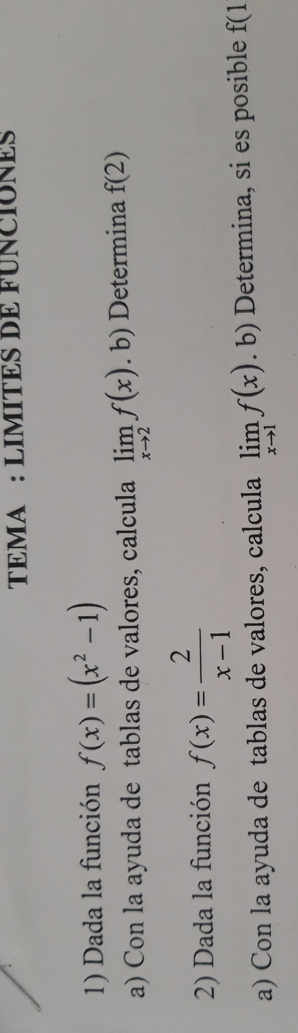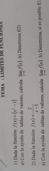 a) Para realizar el limite cuando x→2 debes hacer lim x→2+ (limite cuando la x tiende a 2 por la derecha) y lim x→2- (limite cuando la x tiende a 2 por la izquierda). Entonces realizas la tabla de valores para los dos casos de esta manera: