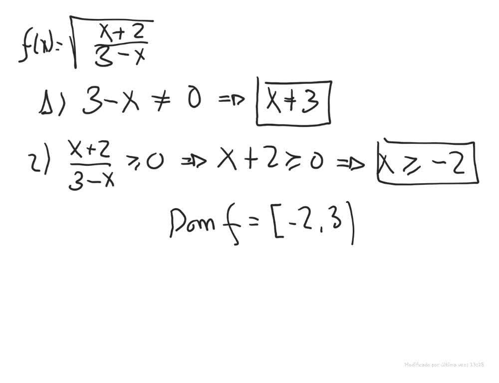 Por favor podéis decirme si esta es la solución: el dominio es de -2 a 3 (el -2 con corchete incluido y el 3 con paréntesis sin estar incluido)