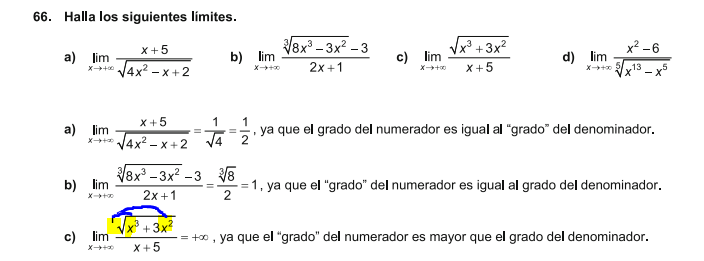 (x(x+3))/ √x+3 (x+5) y la x de mayor grado sería x² y de ahí a dividir todo entre eso y si no me equivoco sale infinito, espero te sirva un poquito.