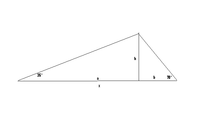 x = h/tan(35°) + h/tan(70°),