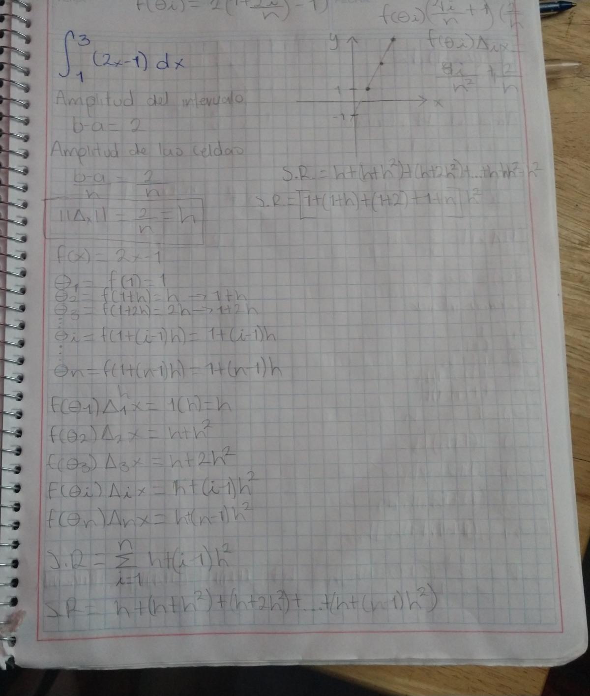 Hola, me podrían ayudar con ese ejercicio? Es por sumas de Riemann, lo intento hacer así porque así nos lo piden en clase, hice eso pero creo está mal... He visto que hay una resolución un poco más corta y aplicando esa, si me sale... Espero puedan ayudarme ![]()