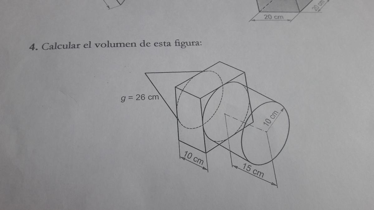 Cilindro circular recto, cuyo radio mide 10 cm y cuya altura mide 15 cm, por lo que tienes: