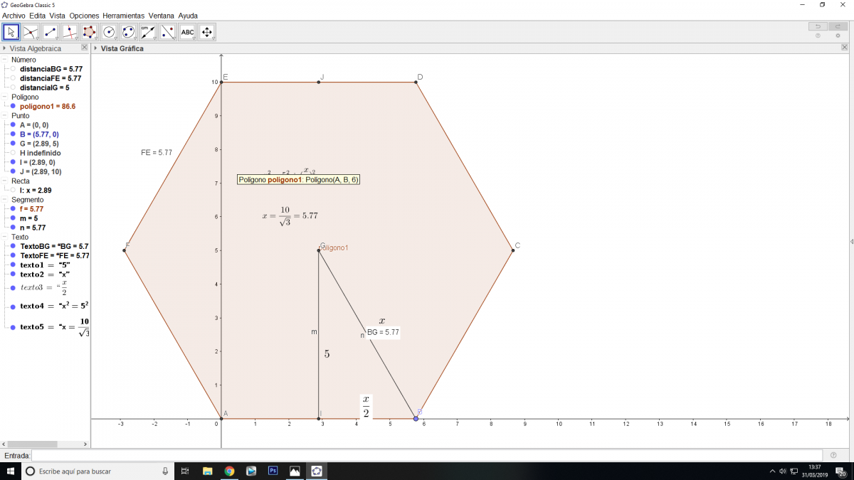 tan(35°) = h/a, de aquí despejas: a = h/tan(35°) (2),