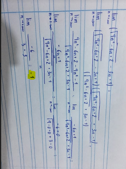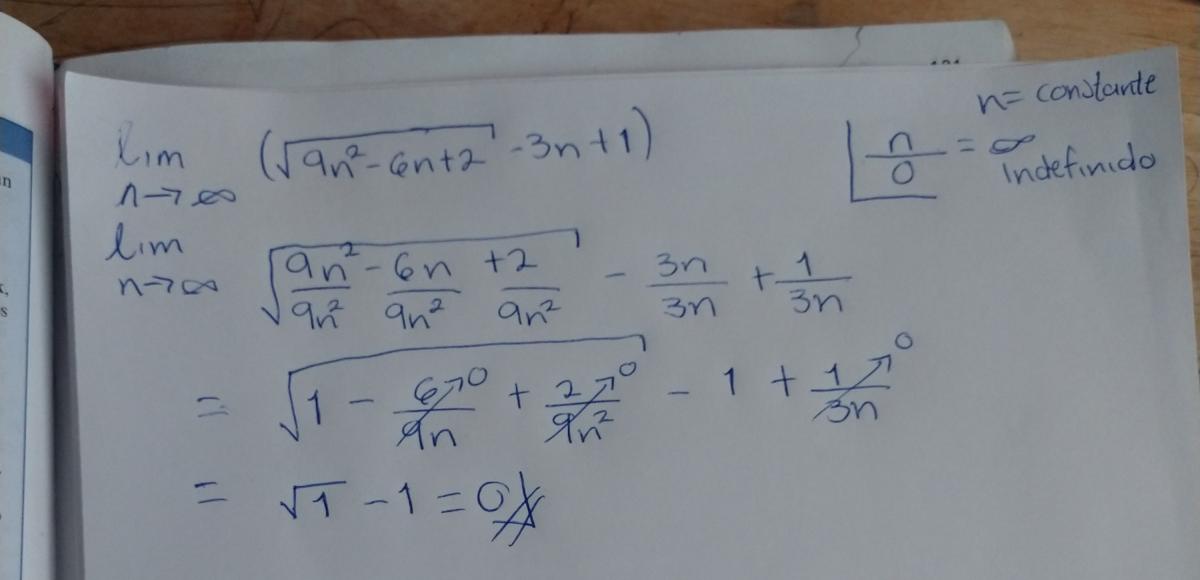 Divides todo entre la n de mayor exponente y esta la encuentras fuera del radical puesto que tienes una afuera, de no ser así tendrías que tomar la que este dentro del radical, y por propiedades ese 3n para que entre a la raíz se tiene que elevar al cuadrado porque es una raíz cuadrada, si fuera cúbica pues al cubo, yo solo usaría el conjugado para quitar las raíces del denominador, es menos rollo ![]()
