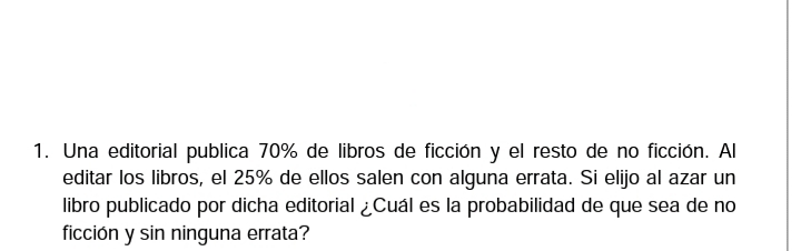 ∼E: "se elige un libro sin erratas", cuya probabilidad es: p(∼E) = 75/100 = 0,75.