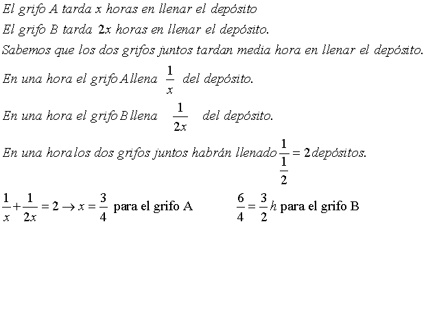 Entendemos que los dos grifos aportan agua y que simultáneamente el desagüe quita líquido del depósito, el que consideramos está vacío al inicio del llenado.