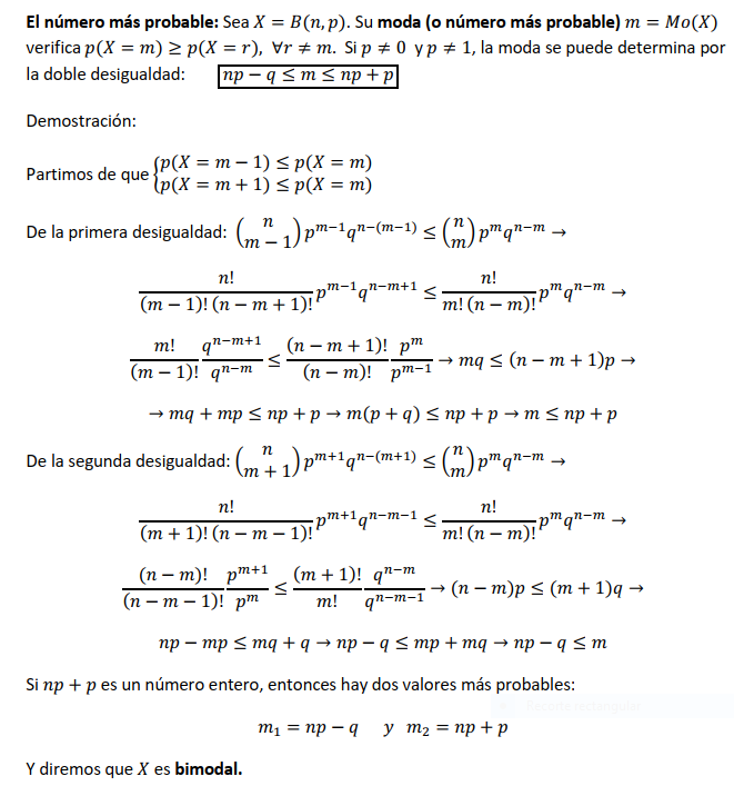 cantidad más probable --> n*p-q =< m =< n*p+p --> 10 * 0.35 - 0.65 =< m =< 10 * 0,35 + 0,35 --> 2.85 =< m =< 3.85