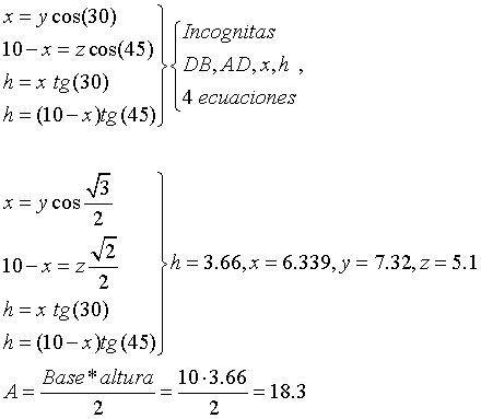 Y ahí comienza el problema, pues para calcular B, hago la inversa del coseno, y me da error. Imagino que es porque algo he hecho mal. ¿Me podéis ayudar?