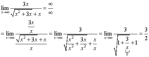 No sé como averiguar el término de mayor grado de la función que está en el denominador para solucionar la indeterminación ∞/∞.