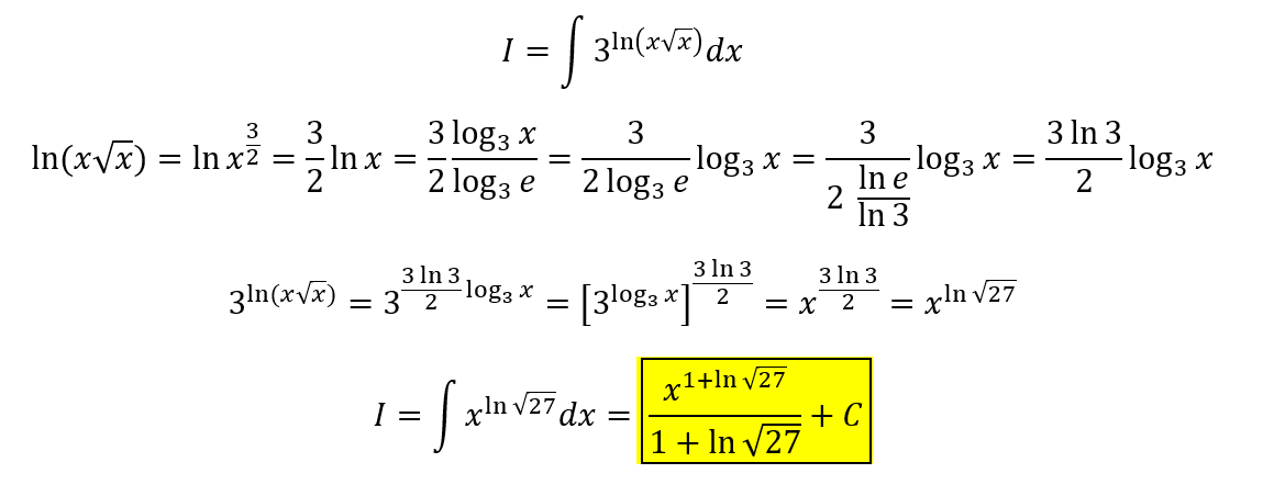 I = 2∫4 2x*dx = integras = [ 2x/ln(2) ] = evalúas = 24/ln(2) - 22/ln(2) = 16/ln(2) - 4/ln(2) = 12/ln(2).