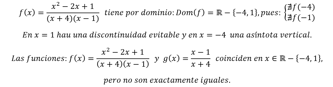 equivale a ℛ-{-4} y que en x=1 no existe discontinuidad asintótica. Nos explicó que esto se debía a que la función f podía ser escrita de la siguiente forma: