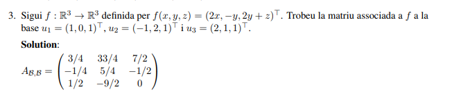 Sea f: R^3->R^3 definida por ... Encontrar la matriz asociada a f en la base ...