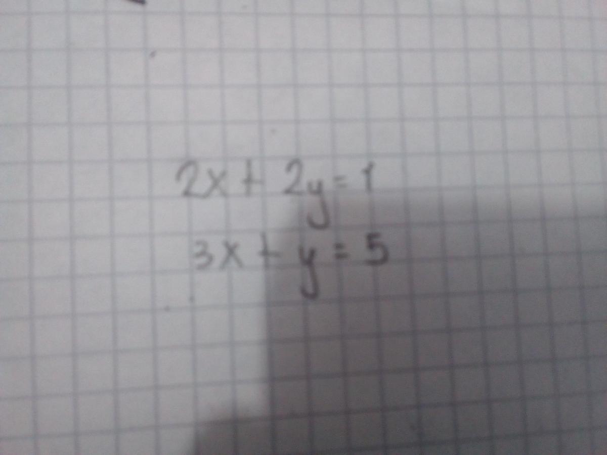 Si despejas dicha variable de la primera ecuación queda y=(1-2x)/2 , y de la segunda y=5-3x. Igualamos y resolvemos la ecuación que queda: