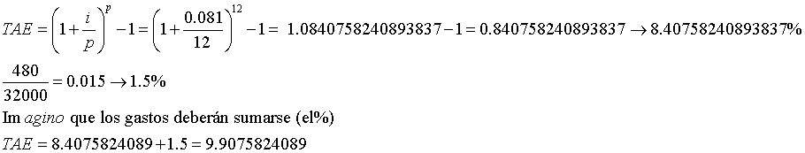 Un banco concede un préstamo de 32000€ al 8.1% anual, en el momento de