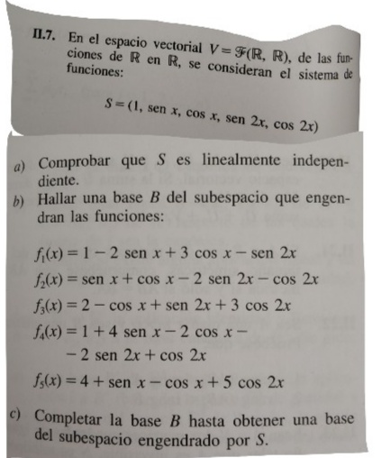 He hecho este problema del libro álgebra lineal, de Burgos. Mi resultado no coincide con el solucionario ya que dice que la base son f1, f2 y f3 mientras que yo tengo que añadir f4