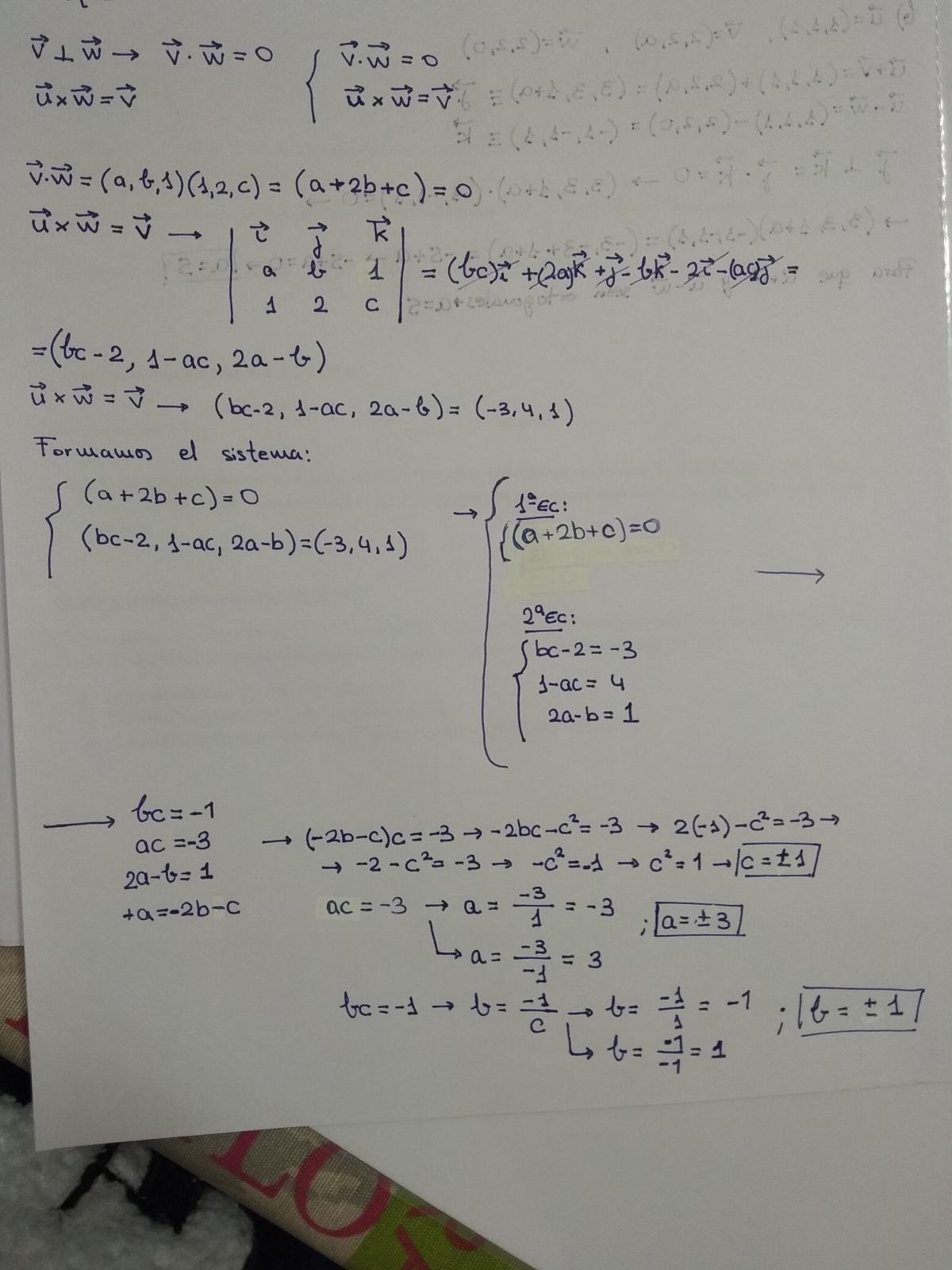 Dados los vectores: = (a,b,1) , = (-3,4,1) y = (1,2,c)