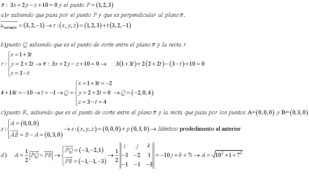 Dados el plano π: 3x+2y-z+10=0 y el punto P(1,2,3) consigue.