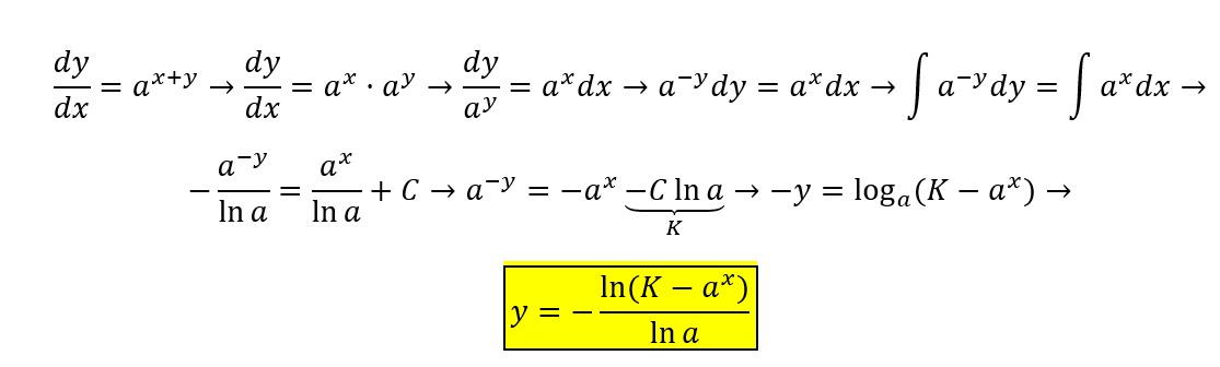 no pude realizarla, lo que intente hacer fue aplicar ln para bajar el exponente luego desarrollar la multiplicacion de (x+y)*ln(a) para luego ir aplicando las propiedades de los logaritmos para ir dejando las x de un lado y las y de otro pero no creo que este bien.![]()