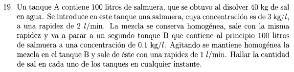 Hola Únicos se que este tema no lo dan porque es de universidad pero necesito ayuda en este ejercicio de aplicaciones de ecuaciones diferenciales de mezclas.