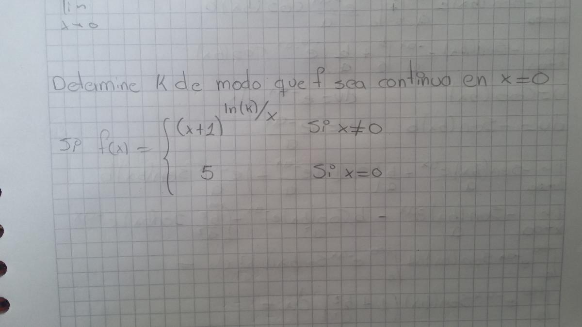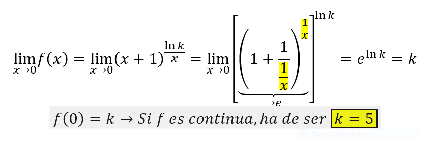 = Lìm(x→0) (x + 1)ln(k)/x = aplicas la propiedad de una potencia cuya base es otra potencia: