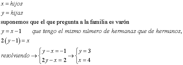 Al preguntar en mi familia cuantos hijos somos te respondo que tengo el mismo número de hermanas que de hermanos, pero mi hermana mayor te dirá que tiene el doble de hermanos que de hermanas. ¿Cuántos hijos somos en la familia?.