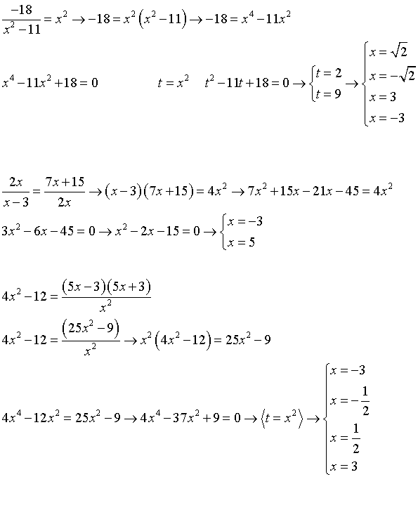 -18/(x2-11) = x2 => -18 = x2 (x2-11)