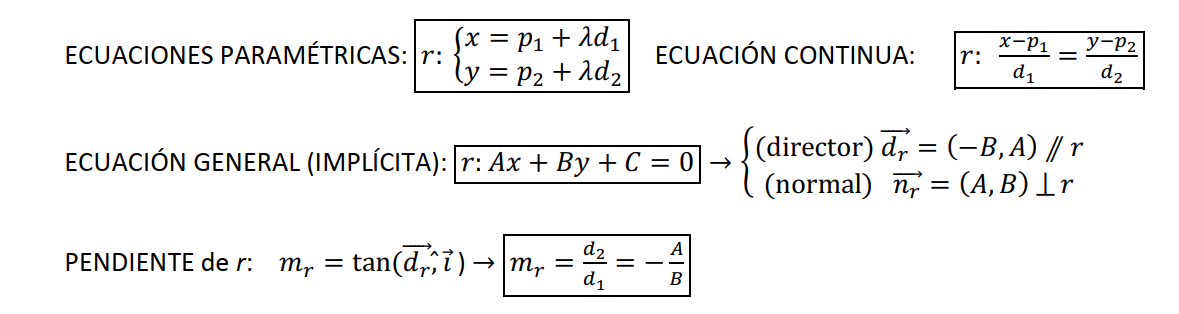 Hola, para determinar el valor de la pendiente y la ordenada en el origen transformamos las ecuaciones a su forma explícita: y = mx + n. Así, m será la pendiente y n la ordenada en el origen.