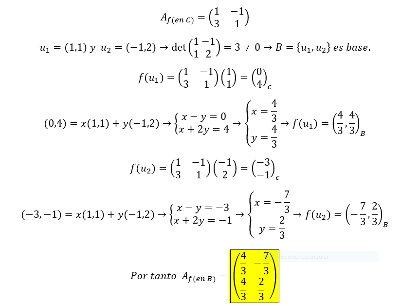 demostrar que u1 y u2 es base de R2 y escribir la matriz f en esta base.