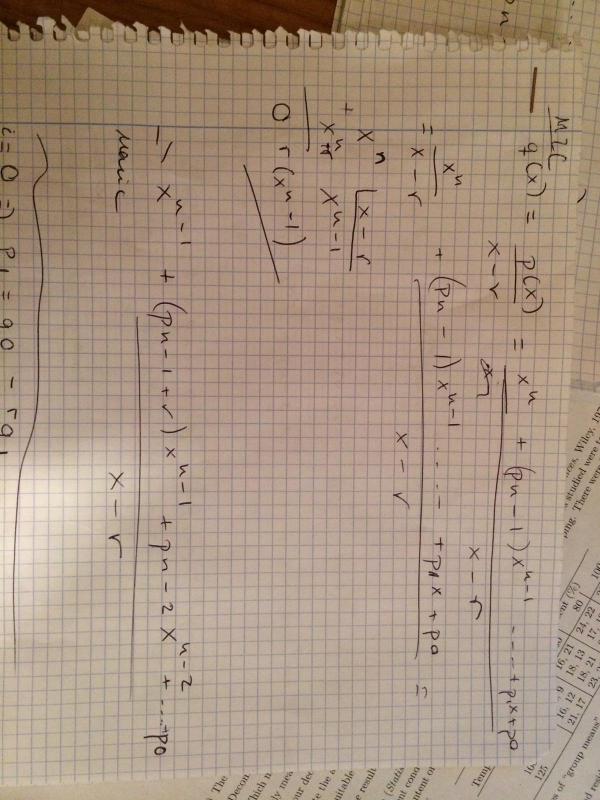 Demuestre que los coeficientes de p y q cumplen que pi + 1 = q i – r qi + 1 para i = 0, ... .n-2 y explica cómo usar esto de manera iterativa para calcular los coeficientes numéricamente dados r y los coeficientes de p. (ya)