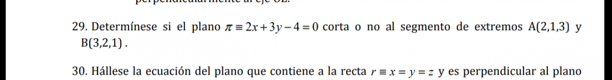 por lo que tienes que no se cumple la primera condición, y puedes concluir que los puntos A y B se encuentran "sobre un mismo lado" del plano.