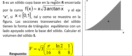 y corresponde a la longitud de la base del triángulo equilátero que es sección transversal del sólido.