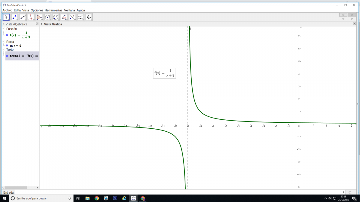 Si es como creo y=1/(x+9) presenta asíntota vertical en los ceros del denominador x=-9