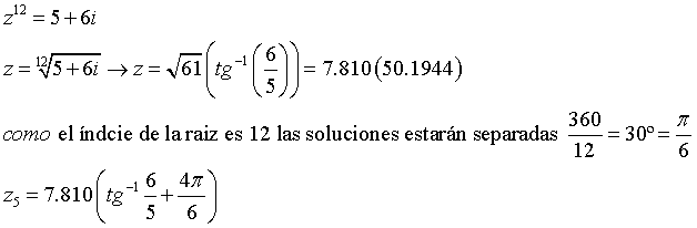 y observa que la separación angular entre dos radios sucesivos de dicho polígono es: 360°/12 = 30°, que a su vez es la diferencia angular entre los argumentos de dos raíces sucesivas, por lo que tienes: